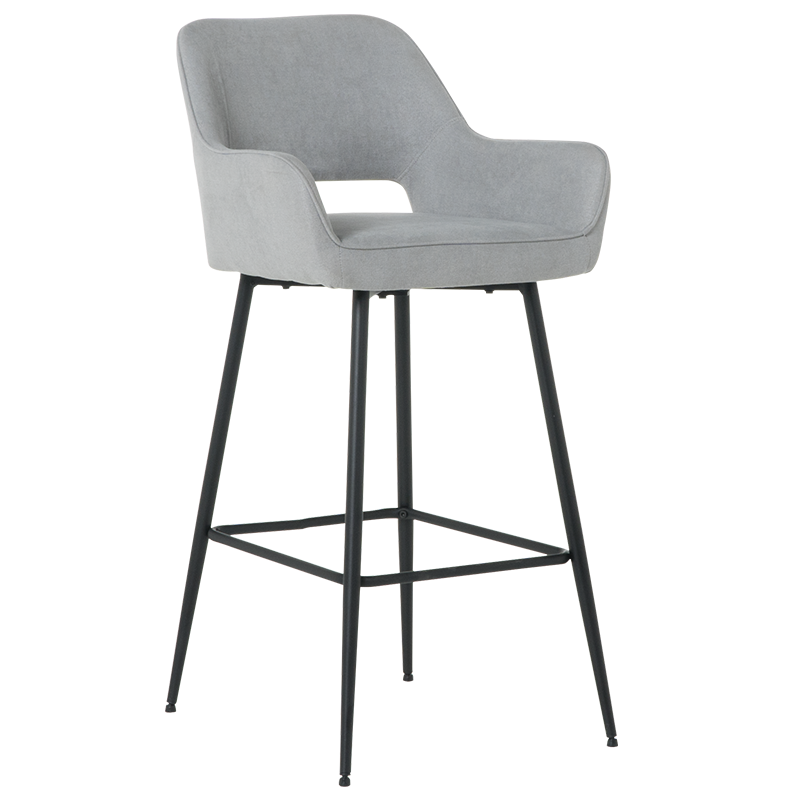 TRENG e стилен и удобен бар стол с подлакътници. Той е изработен от луксозна, нежна дамаска и здрави крака от прахово боядисан метал.