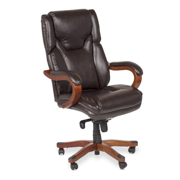 Материал: еко кожа Размери цяло изделие: 73*70*114-122 см Дълбочина седалка: 53 см Височина седалка: 52-60 см Дължина облегалка: 69 см База: дърво с метална сърцевина Подлакътници: дърво + еко кожа Газов амортисьор, коригиране на височина, люлееща функция Заключване в позиция - мултиблок механизъм Цвят: тъмен шоколад Maксимално натоварване: 130 кг. Серия Big Boss.