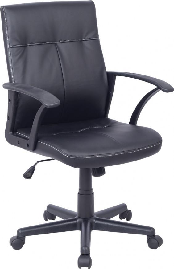 Ергономични седалка и облегалка - Висококачествена еко кожа - Плавно регулиране височината на седящия - Фиксирани полипропиленови подлакътници - Полипропиленова петлъчева основа Височина : 97-108 см Ширина : 60 см Дълбочина : 68.5 см Максимално натоварване : 120 кг Цвят : черен
