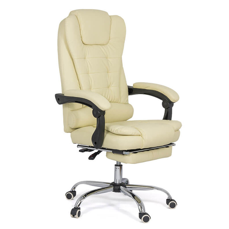 Офис стол COOL BOSS е идеален избор за поддържане на правилна позиция в офиса и за избягване на болки в гърба, рамото или шията. Представеният модел е впечатляващ, отличава се с неговите детайли и функции. За производството на тапицерия е използвана екологична кожа, а за другите компоненти хромирана стомана. Сред силните страни на модела са: - функция за наклон (сгъване до 135 градуса), която предлага релаксация. - Разтегателната опора за крака допълва общия комфорт - въртяща се функция 360 градуса. - функция за повдигане / спускане. - допълнителни възглавници, прикрепени към облегалката и седалката с модерен дизайн. - тапициран екологична кожа. Столът е с обща височина от 111 до 119 см, а границите от 49 до 57 см са размерите, между които седалката може да се регулира. Максимално допустимо тегло: 120 кг. Предлагана гаранция: 24 месеца.