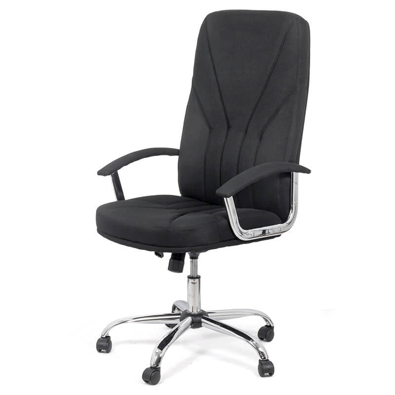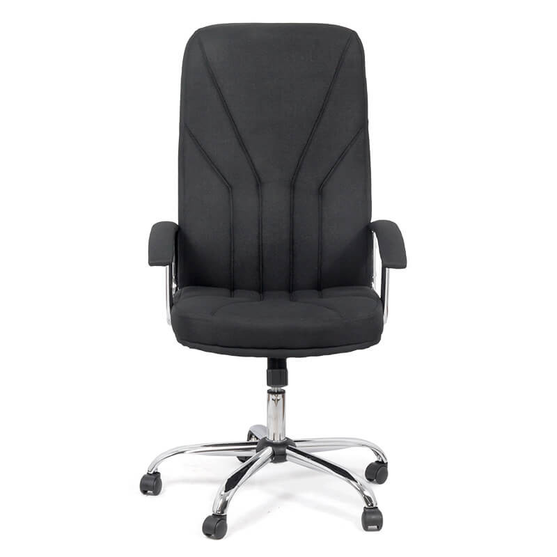 Офис стол FREDERIKO има изискан дизайн с наклонени линии на гърба и седалката, ергономична форма, която предлага повишен комфорт и е тапициран изцяло в дамаска.