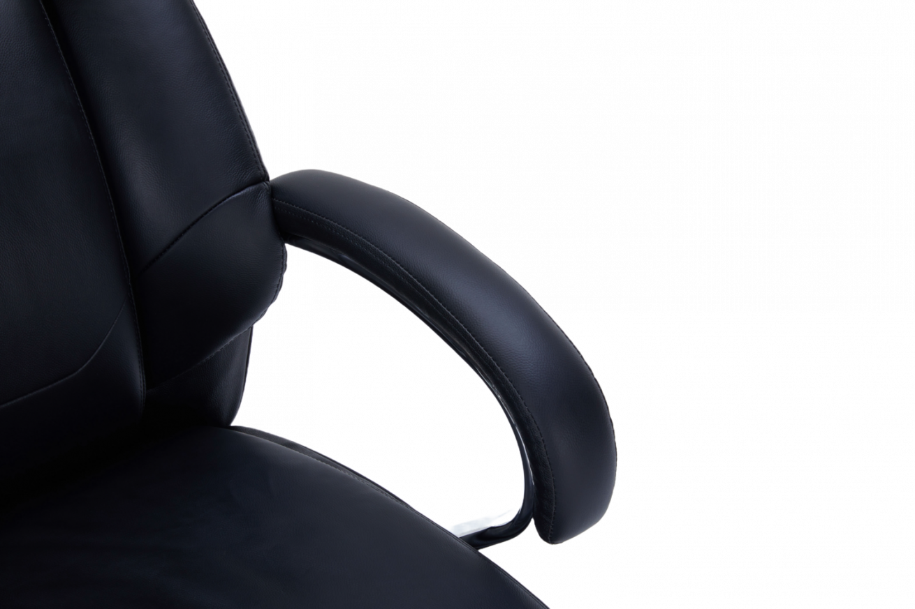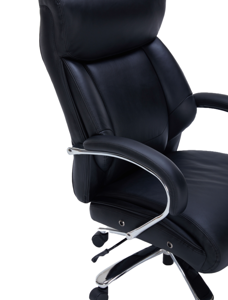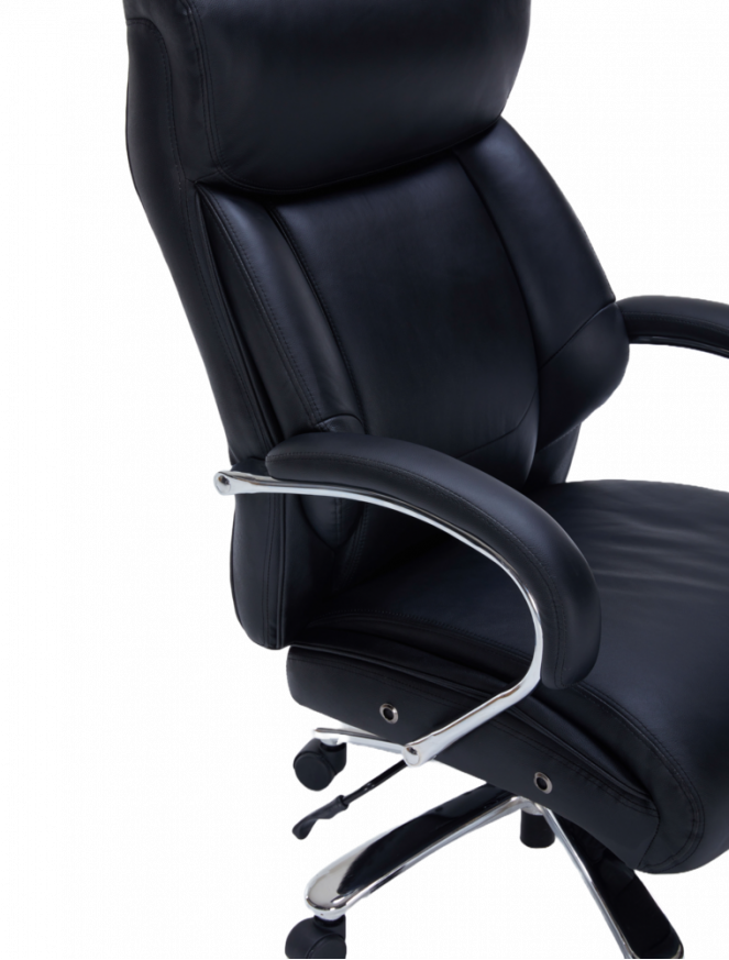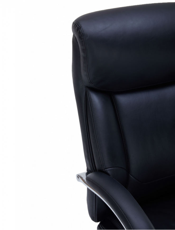 Оборудван с Tilt механизъм, позволяващ свободно люлеене и заключване на облегалката за максимално удобство. Извитите подлакътници с кожени падове осигуряват комфортна опора на ръцете, а здравата хромирана основа гарантира стабилност и модерен акцент във всеки офис.