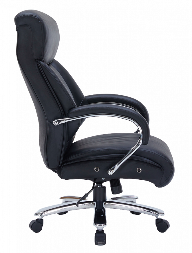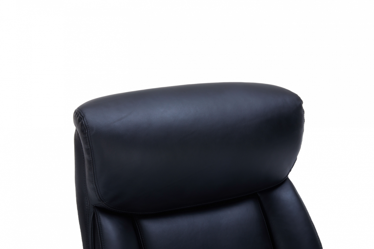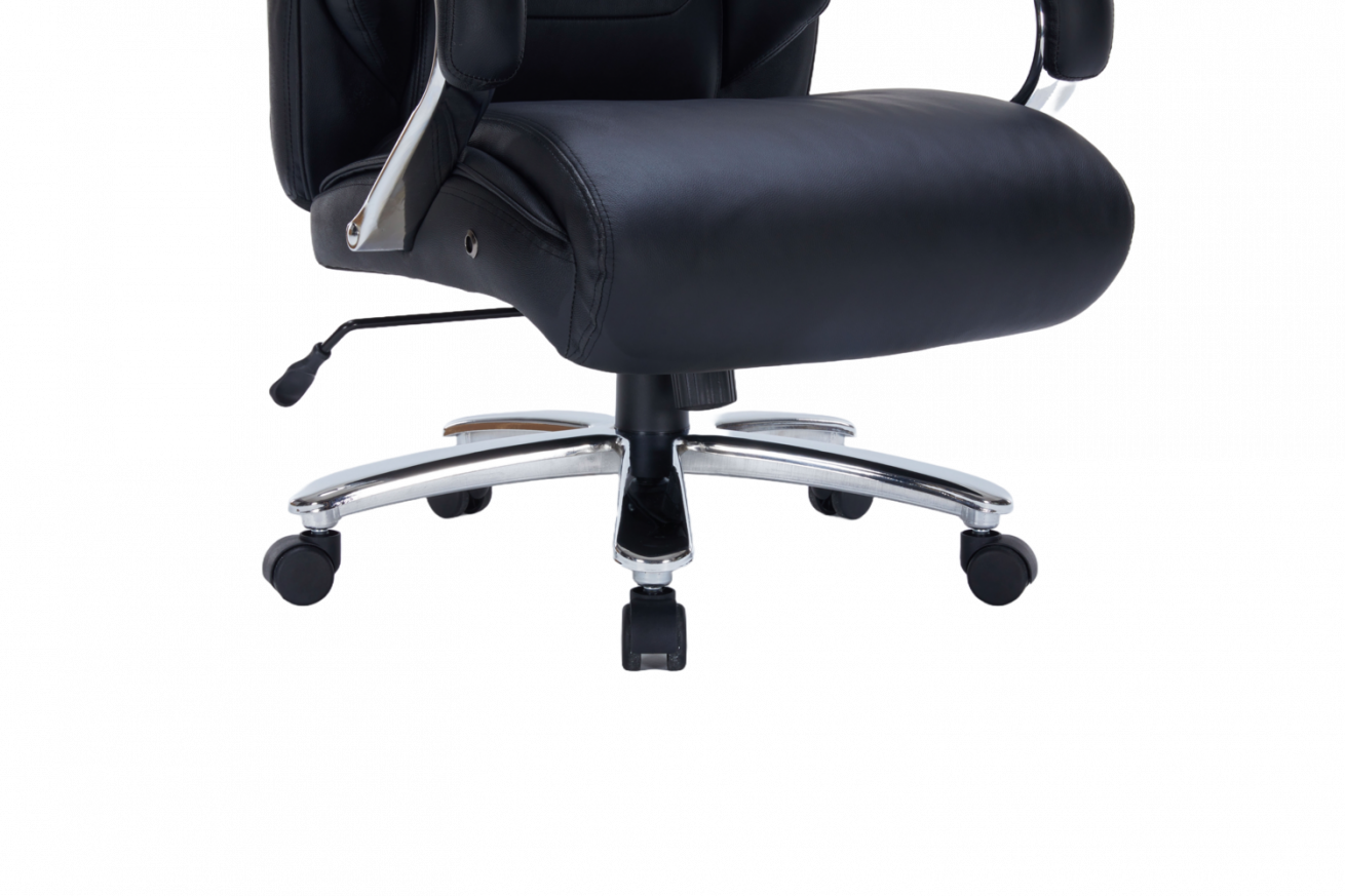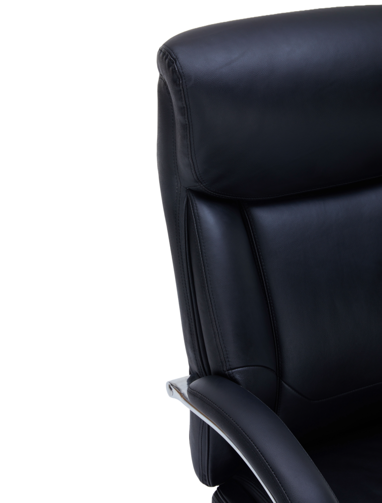 Оборудван с Tilt механизъм, позволяващ свободно люлеене и заключване на облегалката за максимално удобство. Извитите подлакътници с кожени падове осигуряват комфортна опора на ръцете, а здравата хромирана основа гарантира стабилност и модерен акцент във всеки офис.