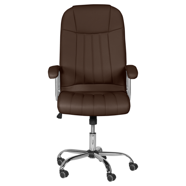 Съчетанието между качествена еко кожа и хромирани метални елементи винаги е изглеждало стилно и луксозно. Във всичките си цветови варианти комбинацията изглежда впечатляващо. Дизайнът на стола е в бизнес стил, но без да е жертвана естетиката. Високата ергономия на стол MATT се вижда от пръв поглед облегалката и седалката следват анатомичните извивки на човешкото тяло, а комфортните подлакътници, тапицирани с еко кожа, повишават допълнително удобството. Столът е оборудван със стабилен и надежден газов амортисьор, осигуряващ регулиране по височина и възможност за завъртане на 360 градуса. Не липсва и функцията за люлеене с възможност за регулиране на твърдостта. Хромираната база пък е снабдена със силиконови колелца, с помощта на които столът се придвижва гладко и безшумно по всякакви повърхности, без опасност от нараняване на подовото покритие. Материал: еко кожа, серия VIVID Размери цяло изделие: 66*51*115-125 см Дълбочина седалка: 51 см Височина седалка: 48-58 см Дължина облегалка: 67 см База: хром Подлакътници: еко кожа + хром Газов амортисьор, коригиране на височина, люлееща функция Цвят: черен, пясъчен, искрящо кафяв Максимално натоварване: 130 кг. Опаковка размер (см) - 76х29х58 - тегло 14,5 кг.