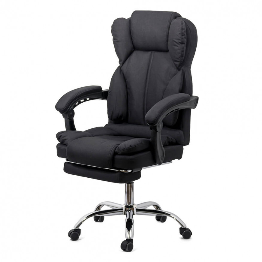 Директорският стол ROBERTO е с ергономичен дизайн, включващ допълнителни възглавници за максимално удобство при седене. Тапицерията му е от дишаща текстилна дамаска в 3 класически цвята (черен, бежов и сив). Моделът е снабден с вградена лумбална опора, широка облегалка с меки възглавници и седалка с висока плътност.