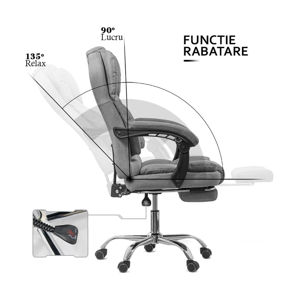 Директорският стол ROBERTO е с ергономичен дизайн, включващ допълнителни възглавници за максимално удобство при седене. Тапицерията му е от дишаща текстилна дамаска в 3 класически цвята (черен, бежов и сив). Моделът е снабден с вградена лумбална опора, широка облегалка с меки възглавници и седалка с висока плътност.
