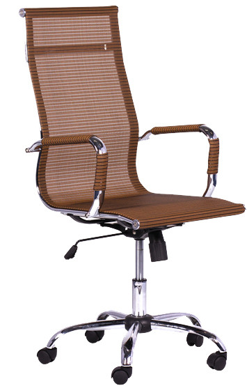 Мениджърски стол със средна облегалка изработен от меш и хром. Подлакътници от хром и мрежа. Хромирана база. Разполага с газов амортисьор, функция за коригиране на височината и люлееща функция. Максимално натоварване до 100 кг.