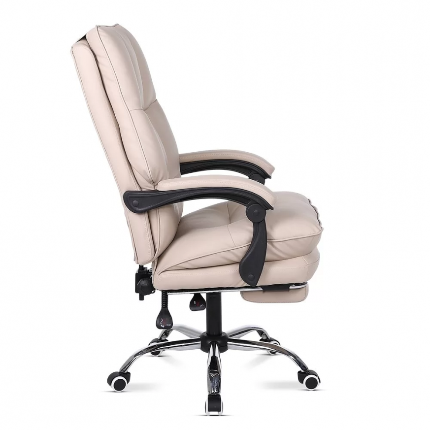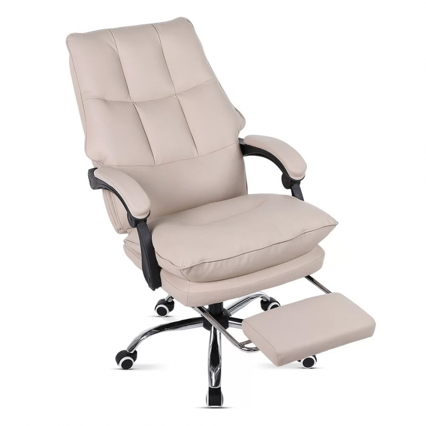 Столът е оборудван с облегалка, която може да се накланя до 135 градуса, идеална за релаксиращи почивки през работния ден.