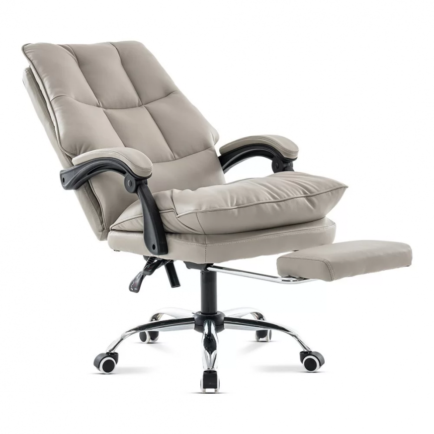 Столът е оборудван с облегалка, която може да се накланя до 135 градуса, идеална за релаксиращи почивки през работния ден.