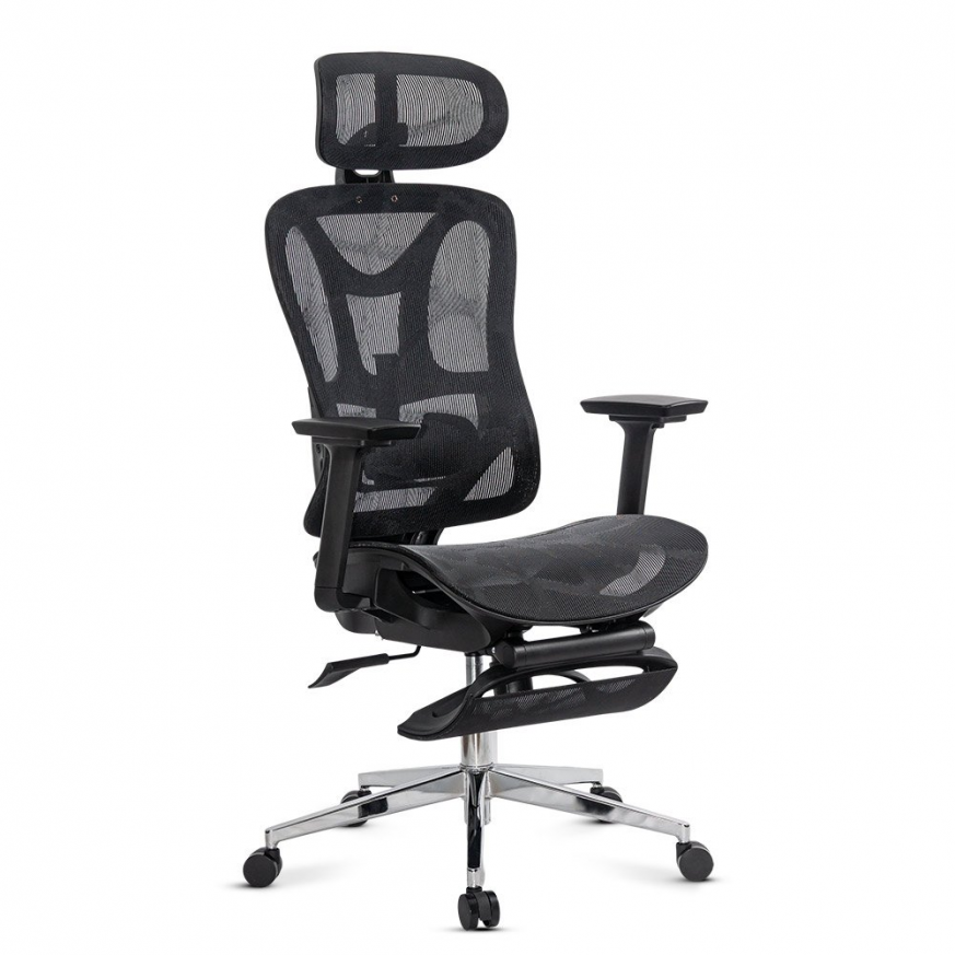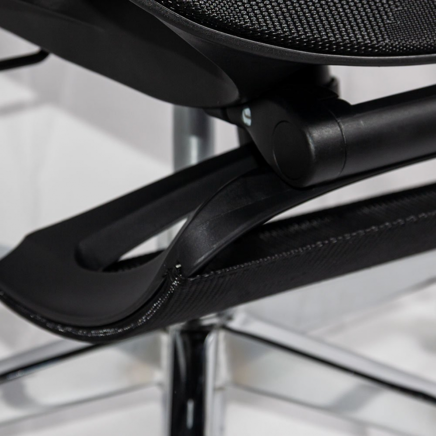 Облегалката и седалката са изработени от дишаща мрежа (mesh), която позволява циркулация на въздуха и предотвратява задържането на топлина.
