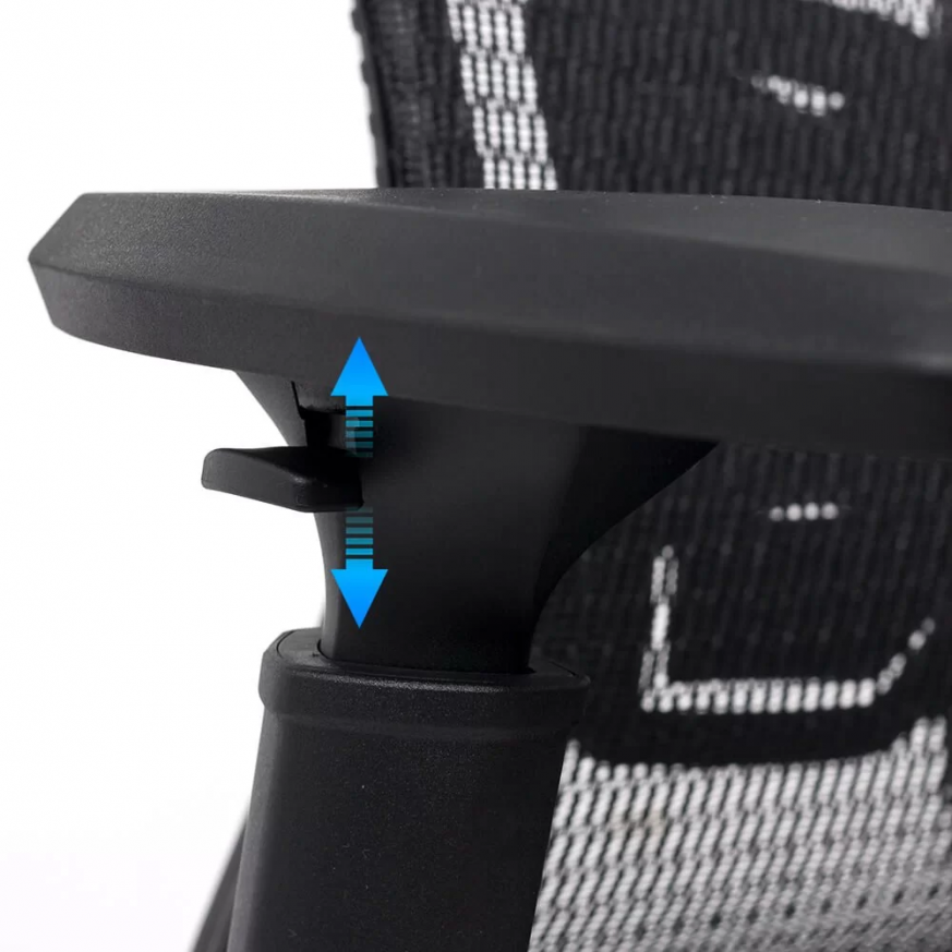 Регулируемите на височина подлакътници и регулируемата облегалка за глава осигуряват превъзходна опора на тялото и ергономична позиция за врата и главата.