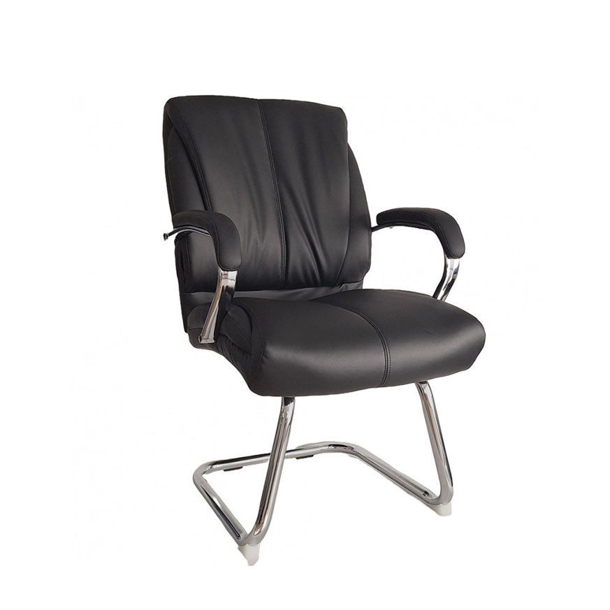 Подлакътниците му са хромирани, покрити с меки кожени падове. Столът притежава удобна и висока облегалка и стабилна хромирана основа. Висококачествената еко кожа е лесна за поддръжка, като се почиства бързо с едно избърсване.