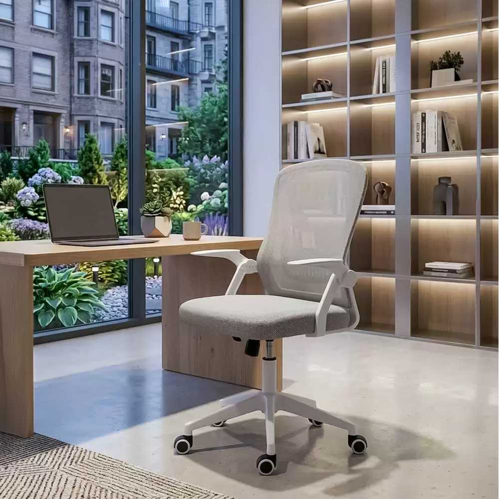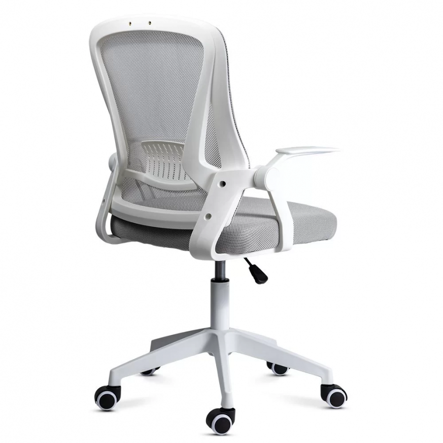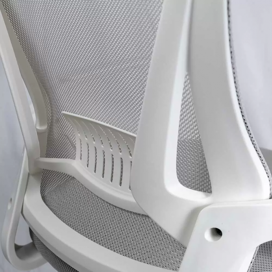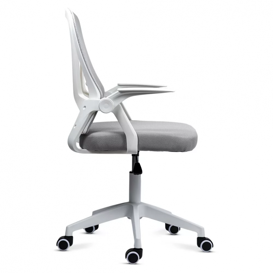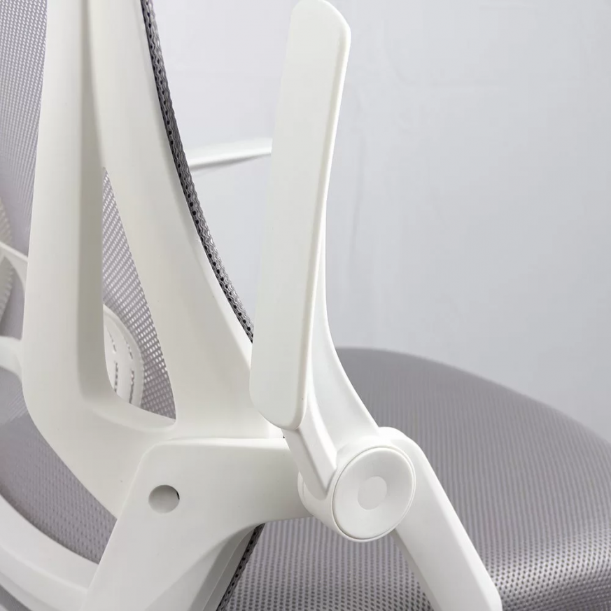 Накланящата се на 120° облегалка осигурява ефективна опора за намаляване на натиска върху гърба, а сгъваемите на 90° подлакътници спестяват място, като съхраняват стола под бюрото, като по този начин увеличават максимално наличното пространство в стаята.