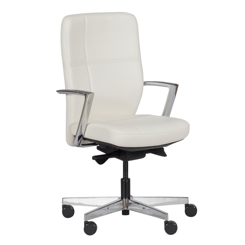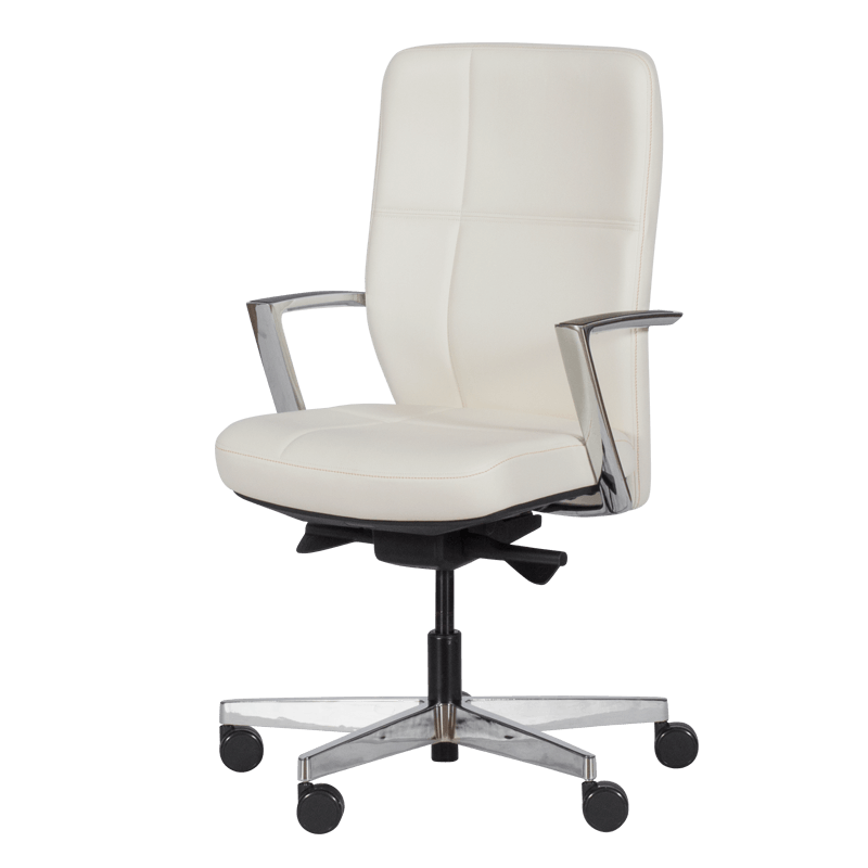 SANDRA е ергономичен офис стол със стилна визия и голям брой функции за максимално удобство. Моделът е с люлеещ механизъм и възможност за заключване в позиция под наклон, а седалката му може да се регулира както по височина, така и по дълбочина. Столът е изработен от висококачествена естествена кожа и алуминиева основа със силиконови колелца.