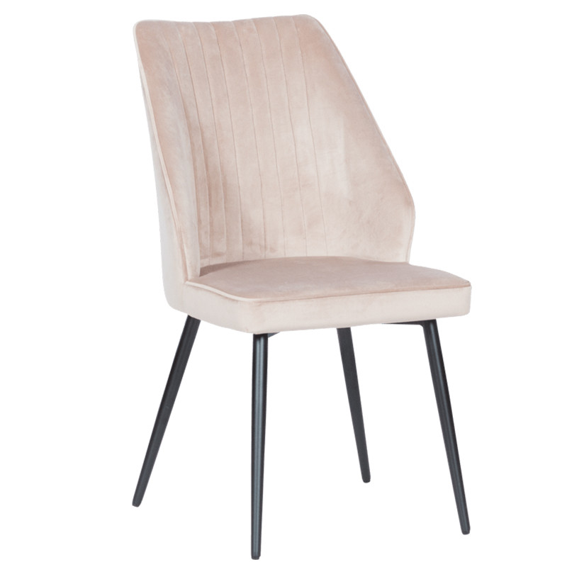 MADLEN е модерен трапезен стол със стилна и изчистена визия, за изботката на която е използвана нежна дамаска и праховобоядисан метал за краката.